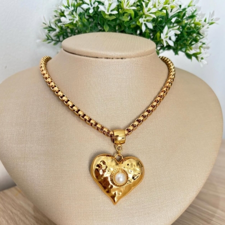 • Colar coração com pérola