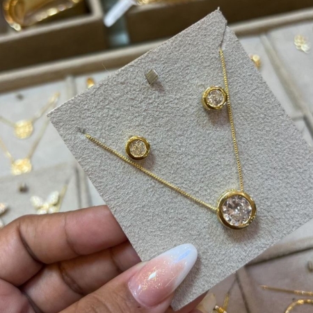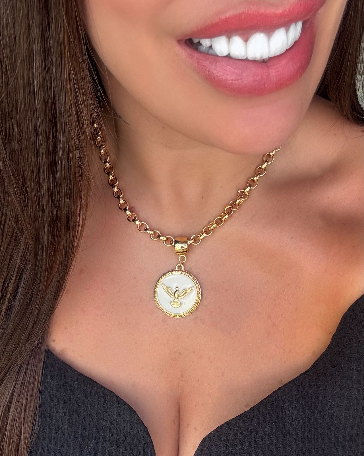 Colar Espírito Santo redondo cor branca, Banhado ouro18k